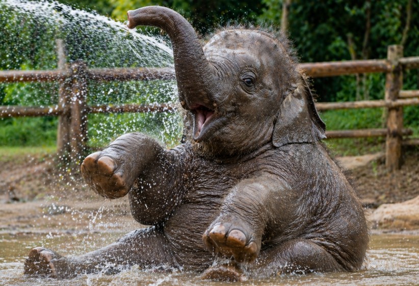 It’s easy to forget that this tiny, playful animal will one day grow into one of the largest land mammals on Earth. But for now, ChongKo is just a baby enjoying the simple things — a splash of water, a warm day, and a moment of pure happiness.